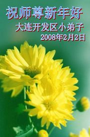 我们一定听师父的话,以法为师,救度更多的众生! 二零零八年二月四日 湖南湘潭学生大法小弟子向慈悲伟大的师父问候新年:师父新年快乐