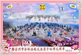 沈阳大法弟子在做好三件事与救度众生的同时,深切的体会到了师父对大法弟子与众生的慈悲。值此新春来临之际,我们沈阳大法弟子更加想念师父,盼望与师父早日团聚。师父曾在1996年6月30日给沈阳大法弟子的信中,对沈阳大法弟子寄予深厚的期盼,今天在大法中锤炼成熟的沈阳大法弟子深深的知道,在完成自己责任使命的过程中和师父要求的标准还有很大的距离。但是,请师父放心,沈阳大法弟子有信心、有决心用大法赋予我们的智慧与能力,在新的一年里,在剩下不多的时间中,互相配合,整体提高,凝聚起更大的能量,破除阻碍我们救度众生的一切邪恶,抓住一切机缘,提高救人的效率,救度更多的众生。 神归 正法洪势漫穹苍 随师多年福音传 同化宇宙真善忍 莲开万朵谢师恩 法船广度入新宇 大法沐浴扫尘霾 无量新生齐称颂 主佛慈悲造大穹 众神聚焦一尘埃 下世佛神有劫难 迷住本性难回天 浊世青莲尘不染 法徒紧随天象变 把握瞬息促三退 不忘使命讲真相 天门已开迎神来 沈阳大法弟子 2008年2月2日 长春胜利公园炼功点的大法弟子恭祝师尊新年好