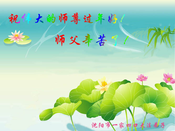 我们大家给师父拜年,师父您辛苦了.我们在新的一年里更加做好师父交给的三件事,救度更多的众生. 高碑店大法弟子代表全家五口给师父拜年,并祝师父新年快乐!
