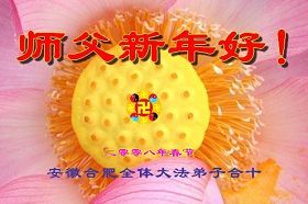 无论在任何的情况下我们都是您的弟子,无论怎样艰难都会按照大法的要求,走好师尊给安排的路,我们知道这条路虽然看起来很窄,但是,在实践中证实了,这是一条唯一的最光明的路。我们吉林的全体大法弟子敬请师尊放心,我们会在做好三件事的同时引领众生走好回归之路,与众生一同跪迎师尊早日回归神州。 福建省福州市大法弟子恭祝慈悲伟大的师尊过年好!