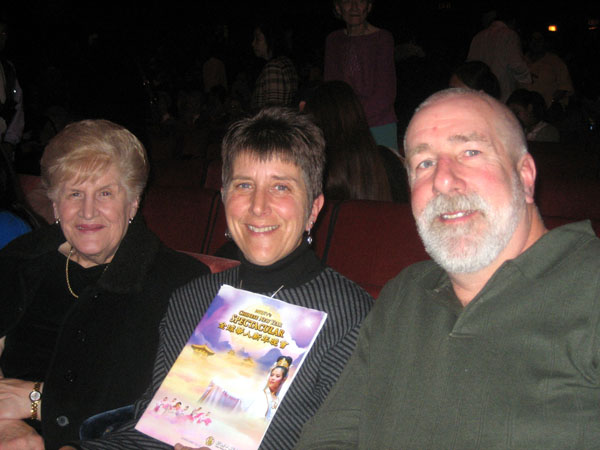 Paygan说,上次到无线电城是来听摇滚乐的,没想到这次能在这里看到这么令人叹为观止的中国传统文化表演。他赞叹晚会服装多彩、音乐优雅、舞蹈精彩,不过最令他难忘的还是威武雄壮的《大唐鼓吏》和《威风战鼓》。 太太Jessica说,整场晚会美的简直令人无法置信(fabulous)。岳母Jay说,她喜欢一开场的《创世》万王之王从天而降的画面,真是太神奇了(fantastic)。 Jerry说,本来太太的弟弟要来看这场演出,因为出差时间无法配合,所以特别打电话要他不要错过。他说,本来还帮太太的妹妹买了票,她临时有事不能来,这次没来看,她一定会后悔的。 岳母Jay说,女儿喜爱东方文化,这样充满中国风味的演出,她一定不会再次错过。