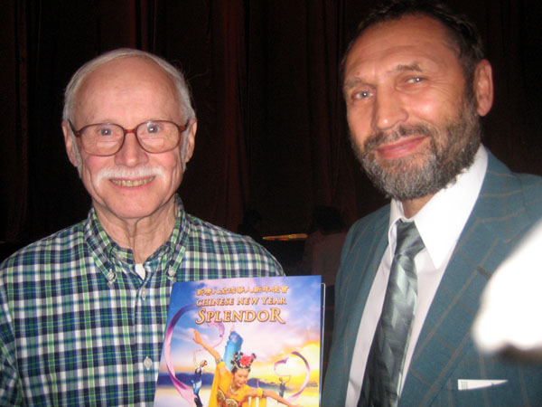 从纽约市政府退休的TOM(左)看了「新唐人华人新年晚会」让他回忆起二十年前在中国的时光 |