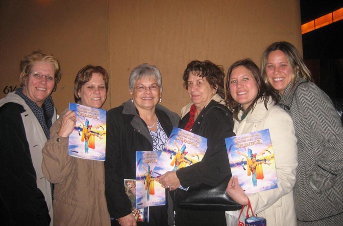 | 【明慧网二零零八年二月七日】(明慧记者周容、苏青纽约采访报导)二零零八年二月六日晚,正值除夕之夜,新唐人华人新年晚会的第九场表演给纽约的观众们带来了一个愉快而又难忘的夜晚。 喜讯传亲友  Joanne家一行六人一起来观赏“新唐人华人新年晚会”
