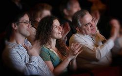 新唐人华人新年晚会除夕场,观众笑声、掌声一浪接一浪。