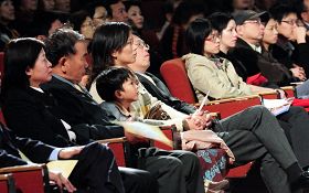 【明慧网二零零八年三月十三日】(明慧记者周容台中报导)喜欢听古典音乐的中兴大学财经法律系主任高玉泉,在观赏了三月十一日台中第四场神韵晚会后表示,他非常喜欢神韵柔和而古典的音乐,他说,如果每天都能听着这样美好的音乐进入梦乡,将会是一件最幸福的事。  二零零八年三月十一日神韵晚会在台中中兴大学蕙荪堂的演出,观众静心的观赏。 |