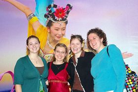 音乐古典而中国 因为在国外读书的关系,以往接触的大多是西方的表演和音乐,高玉泉说,第一次看到这么纯正的中国式的演出。对神韵晚会的音乐情有独钟的高玉泉说,晚会的音乐很中国,但不象以前在海外看到或听到的那种中共文革式的音乐或表演。 他表示,神韵的音乐非常不一样,这些音乐不论是震撼人心的鼓声或是柔和而古典的配乐,听起来都非常舒服,令人觉的非常愉快。他希望很快能买到神韵晚会的音乐CD,他说,如果每天都能听着这样美好的音乐进入梦乡,将会是一件最幸福的事。 好久没看到这样好的表演了 坐在第一排的高玉泉非常仔细的观赏节目的每一个细节,他说:“后面的场景(天幕)跟前面的舞蹈扣的很紧,可见练习的很久,不然不会这么吻合,由此可见这是一个非常认真的舞团。” 他说,每个节目都很好,但是对于第一个节目《万王下世》的印象最深刻。他看到在这个表演中,场上这么多演员,但是每一个人都跳的非常专心,把自己最好的部份表现出来,而且脸部表情和身体连成一体,他表示非常欣赏这样的表演。 意犹未尽的他说:“当然让我感受最深的就是神韵晚会中国古典的味道,真的好久好久没看到这样好的表演了。” 最美丽的回忆   来台湾从事英文教学的洁西卡、玛莉、萝拉等人,受老板邀约一起来体验中华的传统文化 |