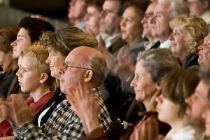 | 【明慧网二零零八年三月十五日】(明慧记者吴思静德国柏林报导)德国时间三月十四日晚十点半,神韵巡回艺术团在德国首都柏林的首场演出在国际会议中心剧场落下帷幕。在观众如潮的掌声中,大幕三开三合,艺术家们三次谢幕。 当天前来观看演出的观众包括联邦议会议员、自由民主党副主席及负责内政文化方面的发言人克里斯托夫•迈耶先生(Christoph Meyer)、国会议员约瑟夫•温克勒先生(Josef Winkler)、柏林几位城区副区长、及多个国家的驻德大使等德国政要,以及文艺界人士、商界精英、以及各行各业人士。他们看完演出后都表示,神韵给他们留下了深刻的印象。  柏林神韵晚会现场观众 |