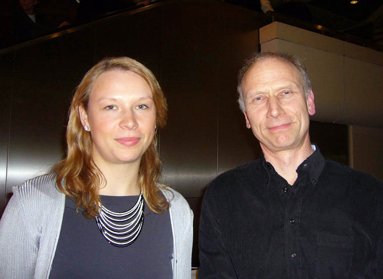巴巴拉(Barbara)和多拉(Dora)退休以前都是教师,巴巴拉专门教智障儿童德语和数学,多拉以前则是在洪堡大学教外语。 巴巴拉说:“(晚会)让我很受感动,我从来没有见过这样的晚会。我觉的,其中最美的是那两根弦的乐器(二胡),太美妙了,太不同寻常了(toll-德语)。” “我非常喜欢那种特技和舞蹈的组合,给我的印象非常深;还有那服装也给我留下很深的印象;从音乐而言,我觉的其中最美的就是那两根弦的乐器,太美妙了,太不同寻常了(toll-德语)。我真正被打动了,太美了。” 巴巴拉还表示对主持人特别满意:“(主持)让人非常高兴,我觉的让那位女士(中国人)说德语,而那位男士(西人)说中文是个好主意。而且看上去他说的中文不错,当然我们无法判断;”多拉接过话题说:“虽然无法判断,但是我是如此的羡慕他可以说这么好的中文。”巴巴拉说:“是,我也是,我也非常羡慕。” 多拉学过一点点中文,她说:“此外,我也对天幕上的中文字非常感兴趣。我认出了那些我认识的中文字,其他的也非常有意思。但是我都有一些伤心了,因为我不认识更多的(中文字)。” “告诉人们在中国正在发生着什么,这非常重要。”   神韵晚会观众:拉尔夫•卜林克曼(Ralf Brinkmann)和史黛菲•卜林克曼(Steffi Brinkmann)父女 |