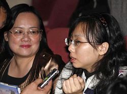 | 【明慧网二零零八年三月十七日】(明慧记者黄宇生报导)刘琳琳女士是吕秀莲副总统身边的秘书。二零零八年三月十六日下午,刘女士偕同女儿一起出席神韵纽约艺术团在台北的演出,母女二人观赏完神韵演出,开心的接受采访。 节目没有功利 启发人心向上 刘琳琳表示,中国传统舞蹈,在台湾没有重视起来,而神韵的到来,正好有机会让大家认识真正的正统中国舞蹈。信奉佛教的刘女士表示,有些节目中以劝善角度启发人心向上,有信仰的人一定有很深的感触。  吕秀莲副总统的秘书刘琳琳女士(左)带着女儿(右)一同来欣赏神韵晚会在台北第三场演出