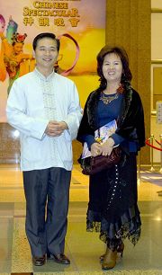 【明慧网二零零八年三月十七日】(明慧记者郑宇涵台北报导)二零零八年三月十六日下午二时,“神韵纽约艺术团”在台北国际会议中心的第三场演出,全场观众爆满。“南阳义学”创办人林献忠先生偕同夫人观赏了这场表演,并向记者表达了他们所受到的心灵震撼。  “南阳义学”创办人林献忠(左)表示,“(神韵的)每个节目都非常的精致,已经是无懈可击!” |