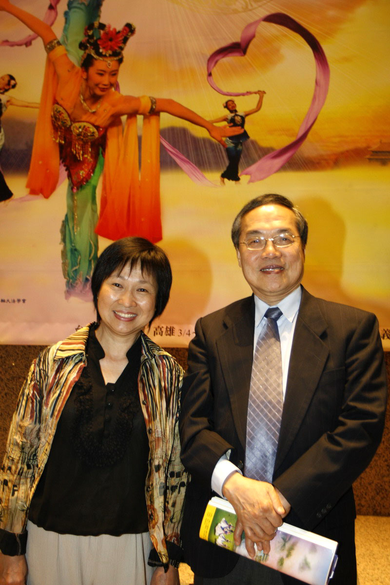 【明慧网二零零八年三月十八日】(明慧记者王清汉台湾台北报导)政治大学台湾文学研究所所长陈芳明三月十七日在台北市国际会议中心观赏了神韵纽约艺术团的演出后,他说当他看到《觉醒》中那位小女孩拉开‘’真、善、忍”的横幅时,“霎那间,我感觉到好象被一股电流电到一样。” 政治大学台湾文学研究所所长陈芳明与夫人一同观赏三月十七日神韵在台北第五场的演出。 |