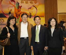 【明慧网二零零八年三月十九日】(明慧记者黄宇生、刘文新台北报导)立法委员涂醒哲与夫人郑玉娟女士,于三月十八日晚上,观赏了神韵于台北最后一场的演出。夫妻二人对于《觉醒》所传递出来的精神表示钦佩,涂醒哲更表示好人不能沉默,好人沉默等于是在帮助坏人做恶。 立法委员涂醒哲夫妇(右)与友人合影 |