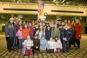 【明慧网二零零八年三月二十日】二零零八年三月十六日,神韵巡回艺术团在德国首都柏林国际会议中心上演第四场晚会。当晚一群十二至十三岁学生兴奋的、高声跟着晚会主持人用中文问候:“你好!”这群学生的校长Doctelgrav表示,演出非常好。  柏林某俄罗斯学校校长Doctelgrav(身穿橘黄色毛衣)带学生前来观看神韵晚会,学习别国文化。她说,演出非常好。 |