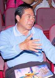 去年江义雄带患脑血管出血的夫人一起欣赏“神韵艺术团”的表演后,夫人整个身体都轻松了,而且看到她鼓掌最大声。今年嘉义场的演出虽然在台湾总统大选前两天,江义雄还是排除万难,坚持带夫人来观赏神韵精湛的艺术表演,希望她的身心都能得到洗涤和升华。 忠孝节义精神推广越多越好 江义雄对神韵演出中展现的优良传统文化表示肯定:“我是比较欣赏那种关于忠孝节义的,像《精忠报国》,这种可以教导小孩子爱国精神的是比较好。” 他还说:“像这种忠孝节义应该是推广越多越好,现在在我们中华民族里面缺少这种忠孝节义的节目。” 男女有别 互相配合 对于男、女舞蹈演员表现出各自的特点,又能互相完美配合,江义雄博士也讲出自己体会:“男性比较阳刚,女生就比较温柔,我认为都非常好!这种艺术表演是很精湛的!我是觉得在这个表演里面,男的女的各有他的一个专长互相配合。” 我们应该奋起把邪恶势力排除 神韵给江义雄的最大感受是:“神韵艺术团她可以鼓舞我们中华民族的精神。”而节目中关于善恶的主题,他说:“我个人是认为这个世界上当然善恶都是有的,但是我们还是要往人性本善这方面去走。那假如有危害到社会的每一个人的权益的话,我们都应该要奋起把这个邪恶势力排除掉,追求我们自己的权利,使这个社会充满了爱跟温馨。”