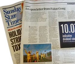 | 【明慧网二零零八年三月二十五日】二零零八年三月二日,新西兰《周日星报(Sunday Star Times)》刊登了一篇由Tim Hume撰写的有关法轮功的文章,该文充满偏见视角和错误论据,试图将法轮功涂抹成政治团体,文中还多处对大.纪.元;时报和神韵演出施以微词。文章刊出后,引起诸多读者强烈不满,纷纷投诉。 二零零八年三月二十三日,新西兰《周日星报》整版刊登了新西兰法轮大法佛学会公开信,向读者澄清了法轮功真相。《周日星报》并对Tim Hume文章中的多处错误致歉。  新西兰《周日星报》整版刊出新西兰法轮大法佛学会的公开信 |