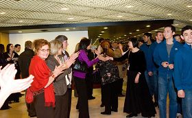 神韵艺术团演员和瑞士商界、政界名流等观众见面,受到热烈欢迎。 |