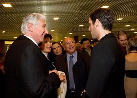 与其它所有城市相同,演出受到了来自政界,艺术界,金融界等各界多观众的好评。在演出后,晚会组织者举办了鸡尾酒会招待晚会贵宾及神韵巡回艺术团成员。当艺术团的成员出现在酒会时,人们热烈鼓掌,并喊道:Bravo(太棒了)。嘉宾们也纷纷高兴的与演员交谈、合影。 日内瓦副州长:晚会体现了传统的美  瑞士日内瓦州副州长兼财政部长戴维•伊莱观看神韵晚会后表示,整台晚会体现了一种传统的美,而不同民族的共同特征就是“真、善、忍”。 |