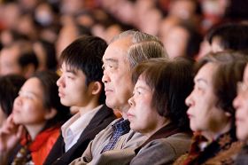 【明慧网二零零八年三月五日】(明慧记者荷雨台湾高雄采访报道)神韵纽约艺术团在台湾高雄的首场演出落幕后良久,台湾知名画家、诗人、南风油画学会理事卢兆琦先生还带着感动停留在座位上,不舍离去。擅长将诗意具化为油画、有敏锐独到观察的他,称神韵是他所看过的最具东方人文艺术之美的演出,是一台“心灵之舞”。 神韵深深吸引观众的心 |