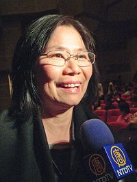 舞蹈团团长:创新、满分 高雄市天韵舞蹈团团长杨智强欣赏晚会后接受记者的采访说:晚会相当精致,演员们的中国舞身段都训练的很好,尤其是整齐度,且演员的素质都很平均。” 杨团长表示:整场的节目以中华民族为出发点,在国外是比较不容易,而这是美国的舞蹈团,国外愿意做这样的文化艺术其实是蛮感动的。” 杨团长觉的神韵中多媒体的天幕与舞蹈的结合很好,这是目前台湾国内舞蹈领域想走的路线,国内很多现代舞也试图创新,整体上“神韵”做的很完整与创新,是一个相当优秀的团体。 摄影师:精细、精致、精美 从事人文摄影的画家兼作家彭淑芬女士表示:“我觉的非常感动,对于中华文化是一种很真诚的呈现,尤其是《水袖》和《大唐鼓吏》,这两个节目我非常喜欢。《水袖》的部份把女孩子的身段与柔美结合,整体的感觉都呈现了。而《大唐鼓吏》非常有男子气概的气势,相当震撼。 摄影会的金治女士表示:“觉的很精彩,而且很精细,节目很精致,每个节目的表现都很好。哪一个最感动?好象说不出来,都感觉非常的好。神韵艺术团很棒,很精美。这是我第一次参加这样的晚会,感觉非常的棒。”
