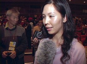 【明慧网二零零八年三月七日】(明慧特约记者唐玲、孟玲台湾高雄报导)三月六日前来观赏神韵晚会的凤西国中音乐老师许琼文同时也是高雄市台湾合唱团声乐指导老师,散场后,她驻足在神韵的大型看板前欣赏演员的宣传照,接受采访时落落大方,侃侃而谈。她说:“原本今晚排好的课都调开了,终得一见神韵丰采  合唱团声乐指导老师许琼文高兴的表示:有机会的话要跟朋友推荐神韵晚会 |