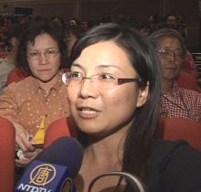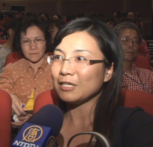 国小老师吴淑娟看完神韵表示:因朋友的介绍,本来就很期待这场表演。看完后觉得蛮感动的,演员们的身段很柔软,很有水准,我很喜欢看中国舞,在《水袖》和《清韵》表演中,像她们那么柔软的感觉,整体很漂亮,把中国女性那种温柔表现出来,是我从来没看过的,我好感动。