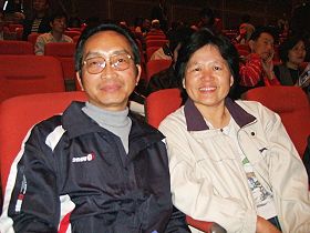 谢义雄谈到:“神韵节目呈现的就是把他的心,跟动作一起表现,好象文化是静态,他用动作,软硬体交溶,用肢体、舞蹈展现出来,一种真正活起来的感觉。”同时表示他也看到了演员们演出时的用心。“在每一个节目中都仔细的演练,演员精神都是一致,每一个动作都展现他们的生命力,非常的美妙。尤其是动作非常的美,有说不出来的那种欢喜,而且非常的感动。” 谢义雄表示:“艺术到一个境界后就如神般,飘飘欲仙,可以给人非常的快乐,而且感受到人生是非常美妙的!懂艺术的人才是真正的神仙快乐,而且艺术是把精神全部带动起来,艺术的领域影响每一个人,再影响更多的人。艺术家把我们的国家、把民族的精神体现展现出来。” 谢义雄赞赏的说:“我觉得看到这个(神韵晚会)节目、动作,意境跟宗教、艺术的配合不是一件简单的事情。有文化、有艺术、有宗教,而且还可以教化人心、净化人心,我觉的是非常高的境界。” “我没有想到说我们中国的文化在国外发扬的这么好,而且在国外的华人有这种推回来的精神,很不简单,工作人员实在太辛苦了,太有心了、用心良苦。” 同时谢义雄也期望的表示:“我们中国文化就是缺少发扬光大,希望能够更多政府单位来配合,把这个中国的文化意识能够传播到世界各国。” 旗山文化艺术协会理事长:神韵表现的是一种内涵 旗山文化艺术协会理事长赖鸿进和友人郑桂兰夫妇一起来观赏神韵晚会在高雄第四场的演出,他表示:“神韵表现的就是一种内涵、唯美的,整体场景画面非常的好,那对我们整个社会来讲,它会带动一种属于善良的、比较具有意义的风气,教化人心。在整个思考方面会让我们更深入,会让我们心灵更祥和。”  旗山文化艺术协会理事长赖鸿进(左)和友人郑桂兰夫妇一起来观赏神韵晚会在高雄第四场的演出 |