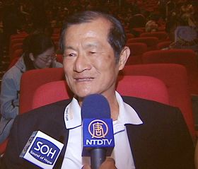 赖鸿进的专业是绘画,他特别提到《万王下世》和《大唐鼓吏》二个节目让他印象深刻,《万王下世》第一幕整个的气氛非常的温馨、安详。《大唐鼓吏》结束时雄壮威武的鼓声令他非常的震撼。整场节目不论在色彩、灯光、音乐各方面都搭配表现的很好。 在一旁的友人郑桂兰谈到:“我是第一次看这种表演,我觉的整体给人一个震撼性,整个色彩明亮很清爽的感觉,所以整体上我觉的真的很棒,我相信宗教就是引导人为善,其实我相信这个内涵里面还有它的意义存在。了解真相以后,还会了解很多事情,不会被谎言所欺骗。” 郑桂兰的先生表示:“演出非常棒,我在南部这个地方是第一次看到这样的场面,有这么样的震撼性演出,非常棒。”“每一个节目都很震撼,中国舞蹈难度那么高,就是从内心、从整个身段里面要表露出来。”