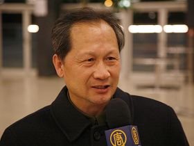他告诉记者,昨天他带了十个病人来看演出;今天正好是周末,而且明天神韵就要离开维也纳了,所以今天自己就再来认真的看一遍,再反思一下。 “这个演出非常好!使我们中华儿女看到了自己的神传文化,也冲破了文化断层,找回自己的根,使我们找回了自己的人格尊严,也使我们看到了中华文化,唤起了我们做中国人的自豪和骄傲。使我们受到很深的教育,很大的鼓舞,也使我们深知‘真、善、忍’好,法轮大法好!”他说, “大陆的演出和这(神韵)没法比。这是高雅的艺术,启迪人灵魂的艺术,是冲破文化断层,去寻找中华民族的根、中华文化的根,使我们自己找到了中国人人格的尊严,中国人的骄傲,我们真正美好和谐的家园,使我们欢欣鼓舞;使得我们感到做人、做中国人又有了希望,又看到了未来的光明。” 他还说:“这里边洪扬的是法轮大法好,也感到整体神韵艺术家们是用心灵在表演节目,使我们看到他们在启迪每个人的灵魂,特别是我们炎黄子孙、中华儿女。我们中国社会已经道德沦丧,心灵已经受到污染了;(这晚会)确确实实是使我们冲破文化断层,净化了我们的灵魂,也提高了我们的精神境界;在美的精神信仰和精神情趣上提高了我们。我感到自豪,我感到骄傲,感到鼓舞。”