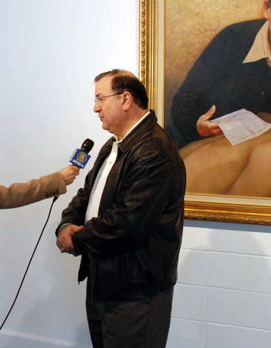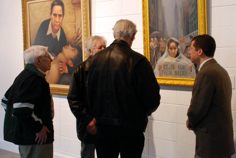 【明慧网二零零八年四月十四日】主题为“坚忍不屈的精神”的画展于二零零八年三月八日至四月六日在美国宾州和新泽西州交界的艺术城伊斯顿展出。画展在依斯顿州立戏剧艺术中心的画廊举行,十五幅参展作品展示了中国的法轮功修炼者们所经受的残酷迫害,迫害对其家人的影响,以及修炼人对自己信仰的坚定。  伊斯顿市长潘多先生(Salvatore J. Panto, Jr.)接受采访 |