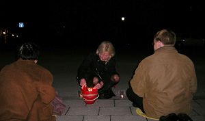 【明慧网二零零八年四月二十七日】“四·二五”北京万名法轮功学员集体和平上访九周年之际,德国巴伐利亚州法轮功学员在中共驻慕尼黑领事馆前举行了烛光守夜,纪念这一历史事件并抗议中共对和平的法轮功学员的残酷镇压。 慕尼黑中领馆前的烛光守夜