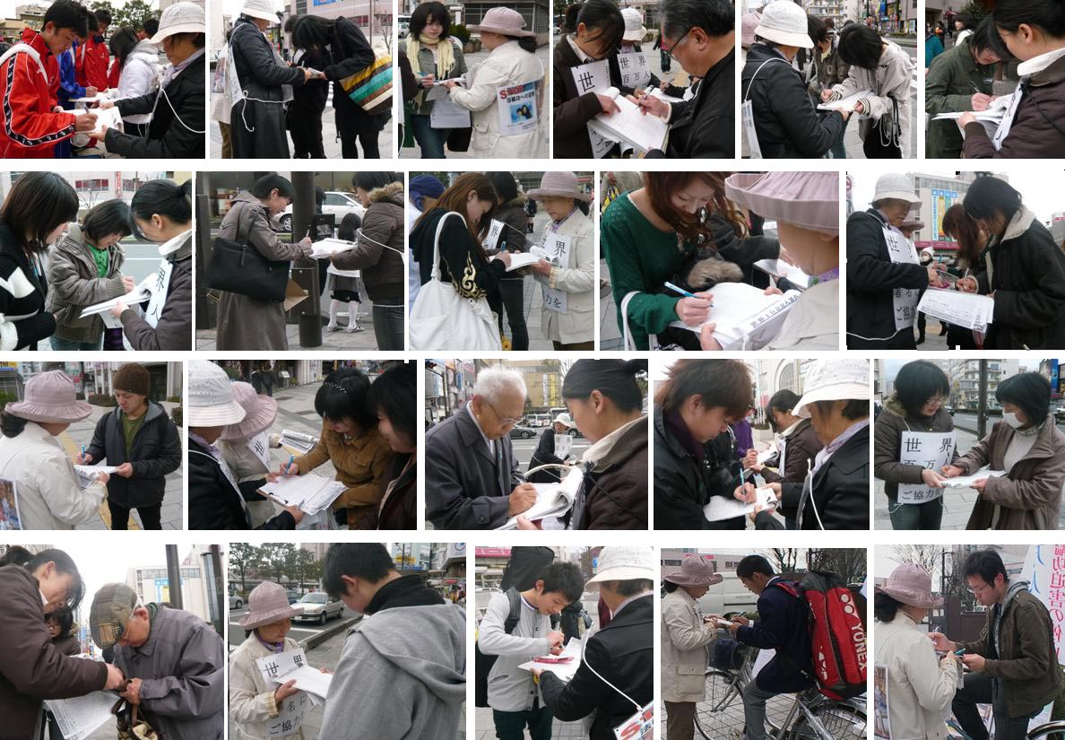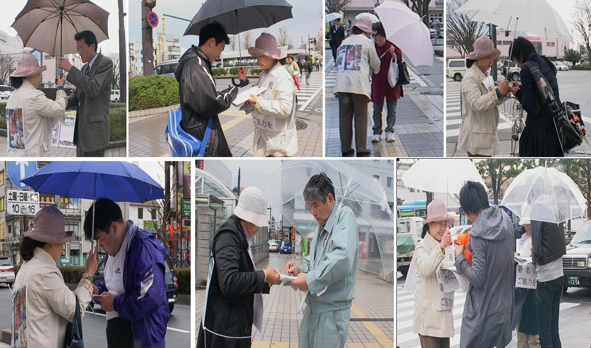 此次汽车之旅自二零零八年三月二十四日开始至三十一日结束,为期一周,途经岐阜、福井、石川、富山、长野等五个县。所到之处,民众反应踊跃,主动签名。沿途共征集到三千以上的签名。 据参加汽车之旅的和田女士介绍,这五个县民风淳朴,许多民众在看了展板或听了介绍征签活动的录音后常常主动要求签名。在这五个县进行征签活动时,民众的签名率非常高,甚至在下雨时,许多民众还打着雨伞签名。一些在旁执勤的警察都对民众主动签名的踊跃程度表示吃惊,他们说在他们看到的征签活动中,民众的反应如此踊跃尚属首次。而一些警察也对此次签名活动暗暗表示支持。一位警察对汽车之旅成员说,因为我现在正在执行公务,无法给你们签名,但我从心底里支持你们。 此次汽车之旅在沿途还举行了新闻发布会。一些当地记者对活动表示很感兴趣并就相关情况以及有关在中国法轮功被迫害的情况作了详尽的提问。 |