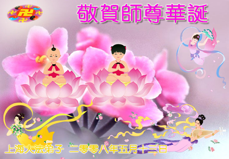 上海大法弟子恭贺慈悲伟大的师尊生日快乐!