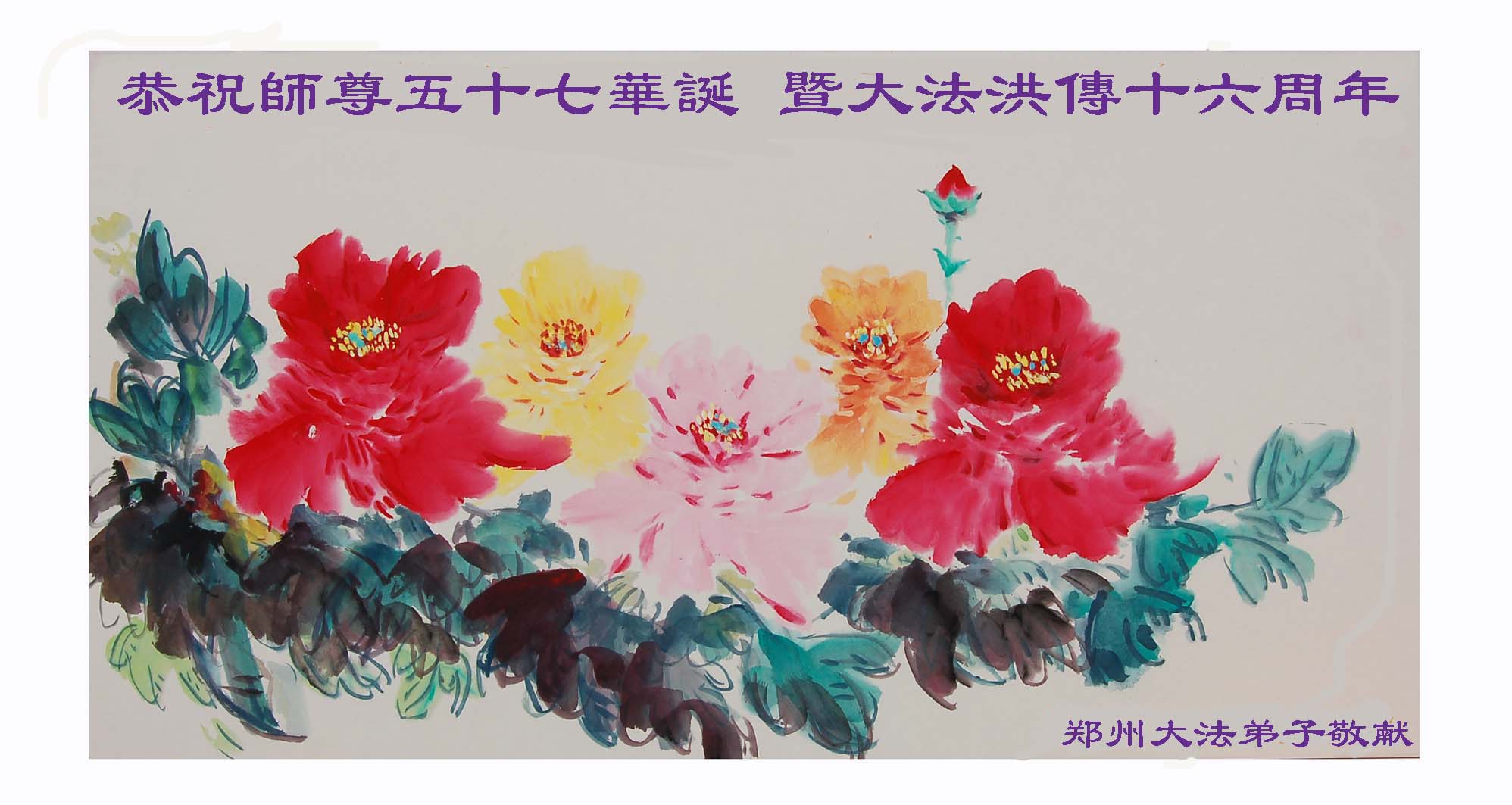 郑州大法弟子恭贺慈悲伟大的师尊生日快乐!