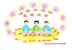 我是二零零七年二月得法的新学员,一年多来,我们一家真是翻天覆地的变化:四代人的身心都得到了根本的改变,都真正体验了无病一身轻的幸福。 在师尊生日来临之际,我代表我们整个大家族、亲友及中国大陆全体大法弟子,真诚的向伟大的师尊问好!并祝师尊生日快乐!同时我也告诉师尊:我家在佛光普照下,出现了奇花开放——两朵金璨璨的菊花正在绽放。这一吉祥的征兆,使我们更坚信大法的无边威力!我虽然得法晚,但我会加倍努力,正信正行,认真做好三件事,争取早日圆满、早日随师回归我们的家园。 流离失所的一家三口恭贺师尊生日快乐