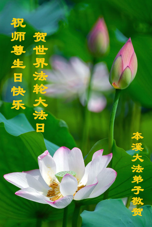 本溪大法弟子恭贺慈悲伟大的师尊生日快乐!