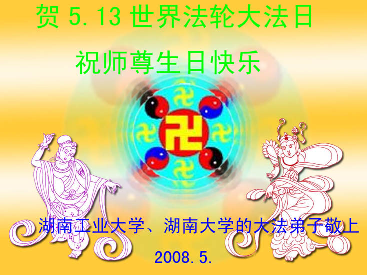 湖南工业大学、湖南大学大法弟子恭贺慈悲伟大的师尊生日快乐!