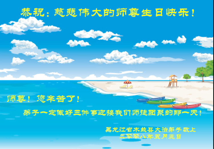 牡丹江大法弟子恭贺慈悲伟大的师尊生日快乐!