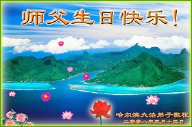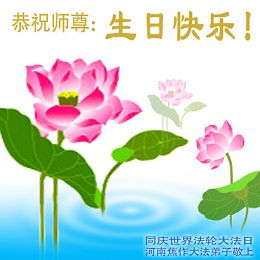 在世界法轮大法日和师父生辰来到之日,长沙大法弟子祝师尊生日快乐。 回顾过去的修炼道路,有走的好的时候也有让师尊操心的时候。请师尊放心,弟子惟有更加精進的做好三件事才能面对师尊的慈悲救度,不管剩下路有多长,有多么艰难,弟子一定会走好 哈尔滨道外区大法弟子全家恭祝师尊生日快乐,并代表被迫害在狱中的家人恭祝师尊生日快乐。