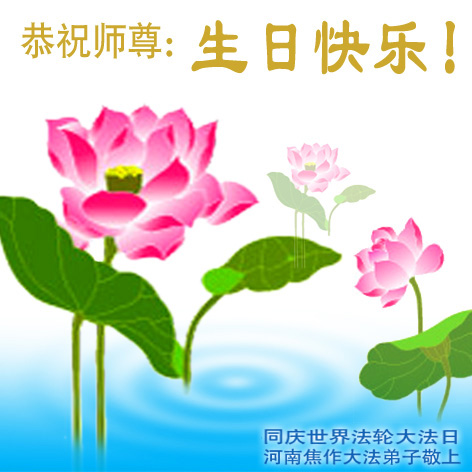 河南省焦作市大法弟子恭祝慈悲伟大的师父生日快乐!