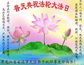 黑龙江省安达市大法弟子祝师尊生日快乐!
