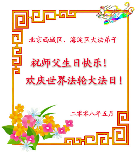 北京西城区、海淀区大法弟子祝师尊生日快乐!