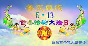 黑龙江海伦市全体大法弟子敬祝伟大的师尊生日快乐;及普天同庆法轮大法日
