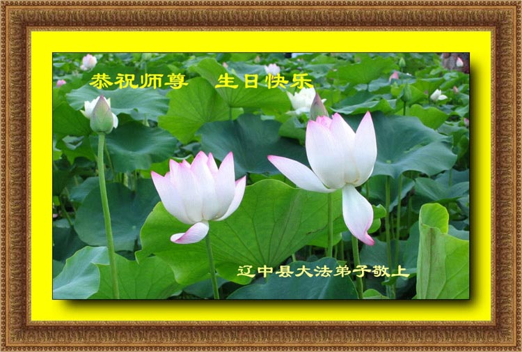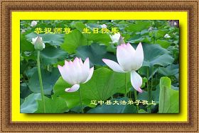 无以表达对师父感激之心,唯有精進实修、全身心救度众生,不辜负师父的期盼,请师父放心,我们一定做好。 辽宁盖州市全体大法弟子敬祝师父生日快乐!恭贺世界法轮大法日!