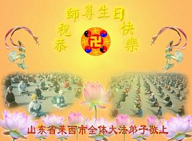 山东省栖霞市全体大法弟子恭祝伟大慈悲师尊生日快乐!