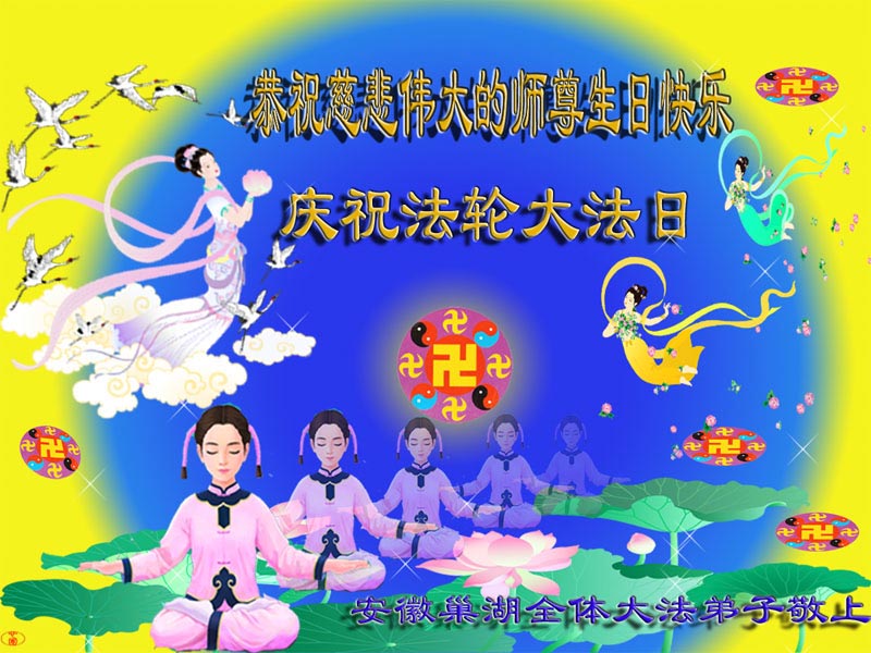 安徽巢湖全体大法弟子恭贺师尊华诞及世界法轮大法日