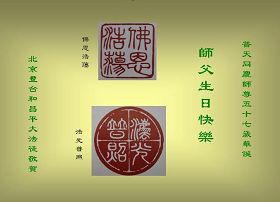 在师尊生日之际,弟子纵然用尽世界上最华丽的语言也无法表达对您的感激,千言万语也无法回报您对众生的慈悲。请师尊放心, 在正法的最后阶段,弟子一定更修好自己,正念正行,做好三件事来回报师尊的苦度。 汕头全体大法弟子 2008年4月初四 河南郑州大法弟子恭祝慈悲伟大的师尊生日快乐!