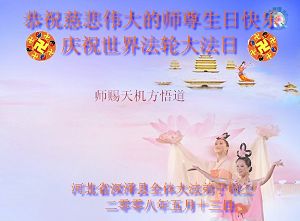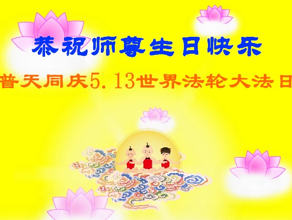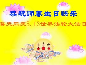 观看闪画(3.9MB) 大陆大法弟子恭祝慈悲伟大的师尊生日快乐!并贺世界法轮大法日!