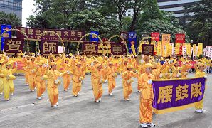 腰鼓队表演恭贺师尊华诞及世界法轮大法日 |