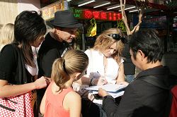 人们很高兴能在展台上的百万征签呼吁书上签上自己的名字,以此表达对人权的支持。这份呼吁书是要求澳洲政府支持全世界正义人士为制止中共迫害法轮功而作出的努力。签名的人们说:“谢谢你们的努力把中共对法轮功的迫害真相告诉我们,现在的人都是为钱活着,而你们为了人类的信仰自由与和平而无私贡献。” 帮助设摊的悉尼海港管理区的工作人员不但自己看完画展后在百万征签呼吁书上签了名字,还赶着去把她的另外五个同伴们请来看画展和签名。一名澳洲女士看了很久以后,不但自己签了名,还主动当起了义工,走到人行道上,一个一个的把路人请进来看画展和签名,她说非常认真和感慨的说:“我认为每个人都应该来看这个画展和表态支持(法轮功)。” 这些参观者几乎全都在采访中表达了对中共迫害法轮功的震惊和愤慨。 他们希望法轮功学员能更多更广泛的加大力度揭露中共迫害法轮功的真相。爱立克斯(Alex)是法律系学生,他带了他的哥哥和一个女同学一起看了好久并解释给他们听了许多关于中共迫害法轮功的真相,他说:“我在二零零五年开始就知道中共迫害法轮功的真相,我开始在网上寻找更多的资料,并把这些写在我的论文中告诉我的同学和老师。我想帮助制止这场迫害,但不知道用什么办法是最好的。我希望你们用最强力的办法让人们都知道要参与帮助制止在中国迫害法轮功的重要性。因为现在的世人为了一点点利益小事而在社会上搞得很大,而法轮功事件是关系到这么多好人受到迫害,信仰自由遭到剥夺的特大事件,是人们应该最关心和支持的。” 有一个中国老人在看了当天的游行以后特别赶来观看真善忍画展,他表示非常支持艺术家们通过这种形式来表达真善忍,他以后还会来参加学炼法轮功。 据悉,悉尼法轮功学员还将在五月十三日当天在市区举行图片展、天国乐团表演、真相长城等活动,请留意悉尼的后续报道。