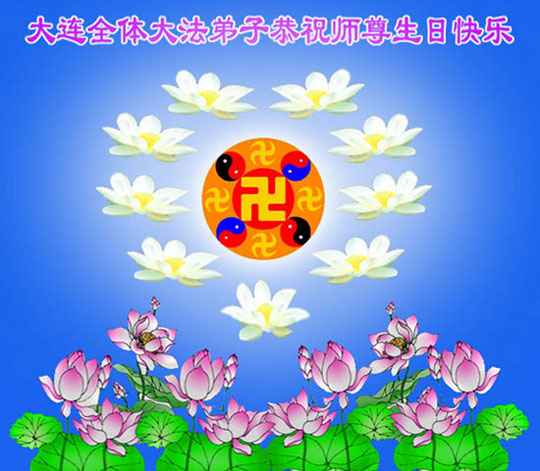 大连大法弟子恭贺慈悲伟大的师尊生日快乐!